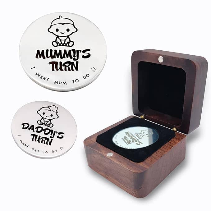 Let fate decide with this hilarious ‘Mom or Dad?’ flip coin for the ultimate laugh.