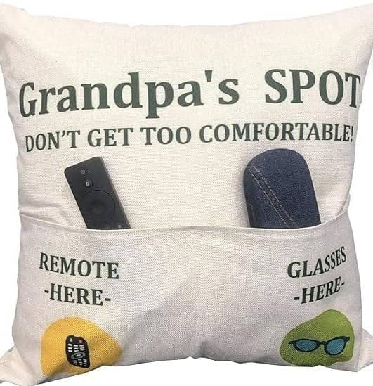 Help Grandma keep track of her glasses and remote with this handy pillow—perfect for her "cozy" moments!